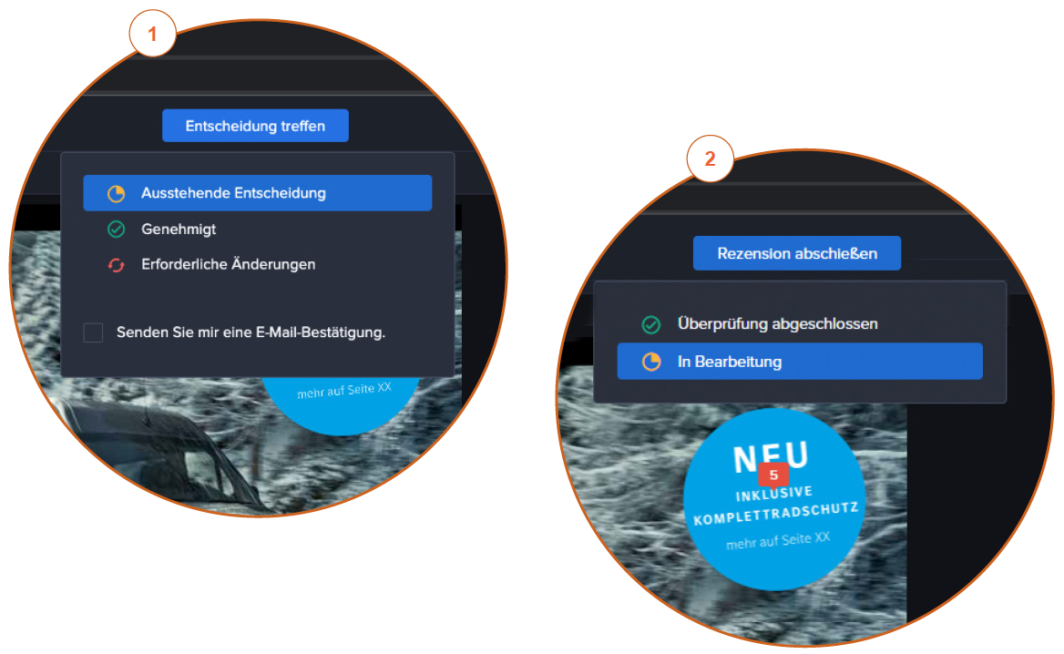 Je nachdem, ob Sie aufgefordert wurden, eine Entscheidung zu treffen oder nicht, können Sie die Überprüfung wie folgt abschließen: